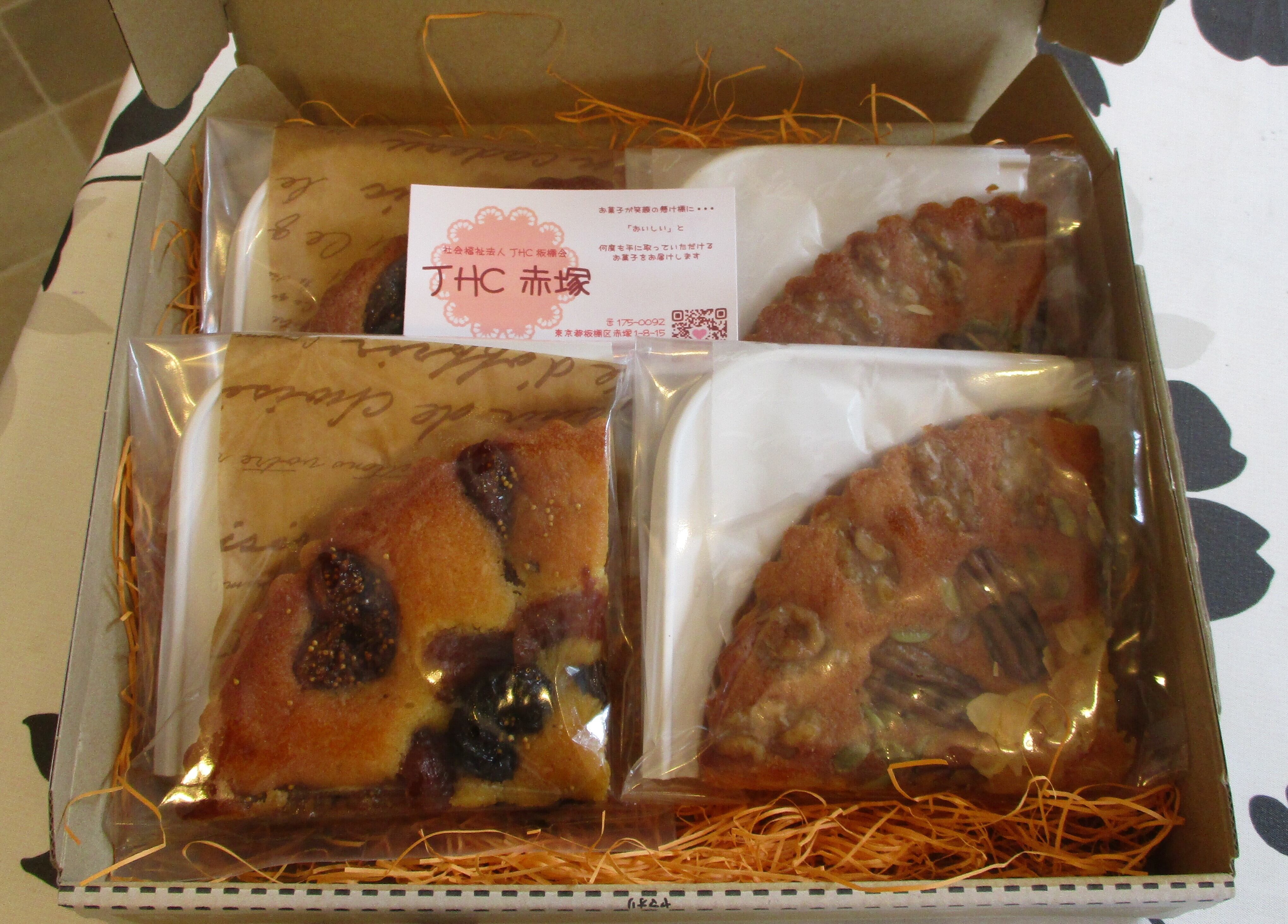 4分の1にカットされたタルトが2種類 4個入っています。(フルーツ プルーン あんず イチジク、ナッツ)